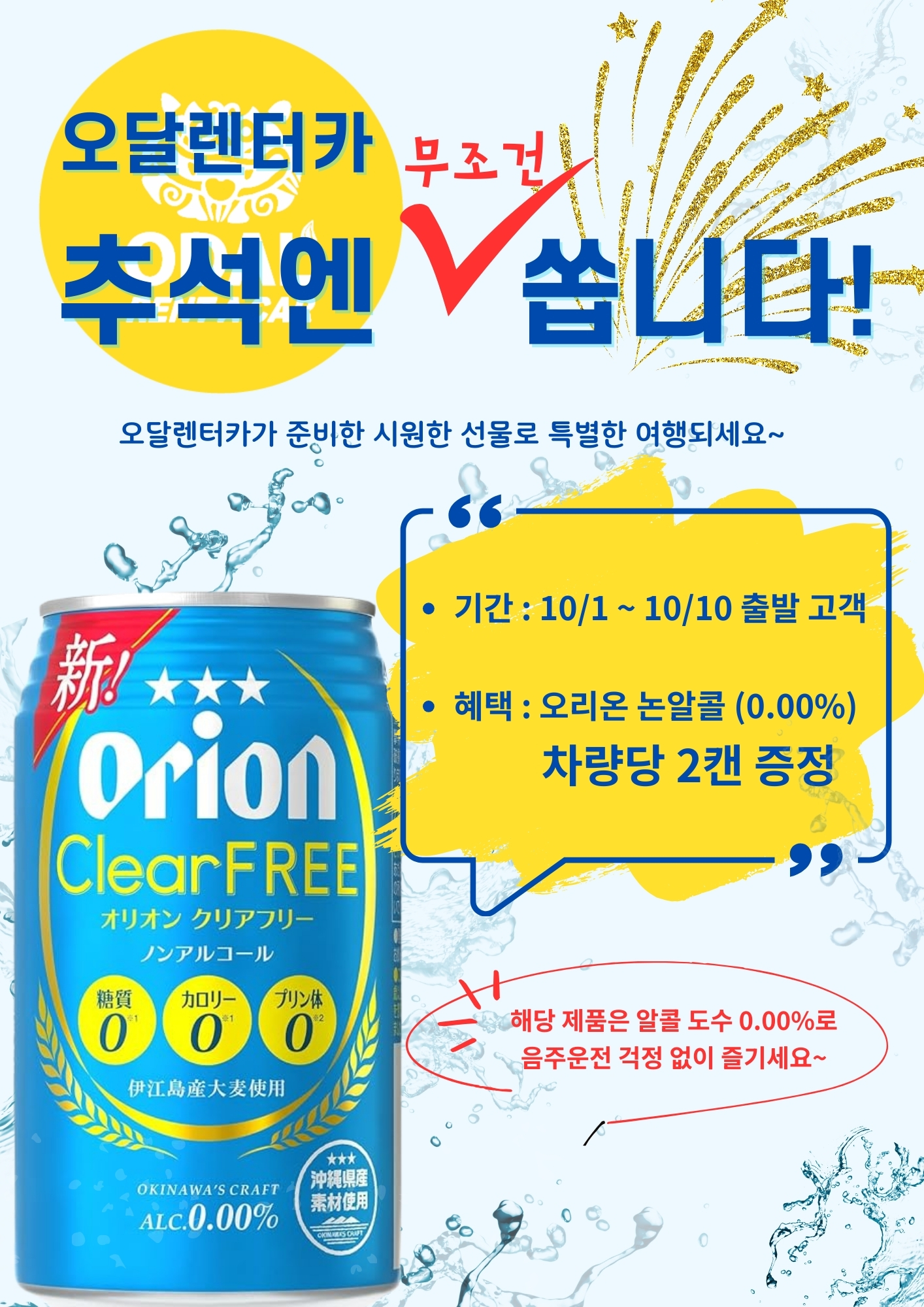(종료)[오달렌터카]추석맞이 오리온 논알콜 맥주 이벤트(10/1~10/10)