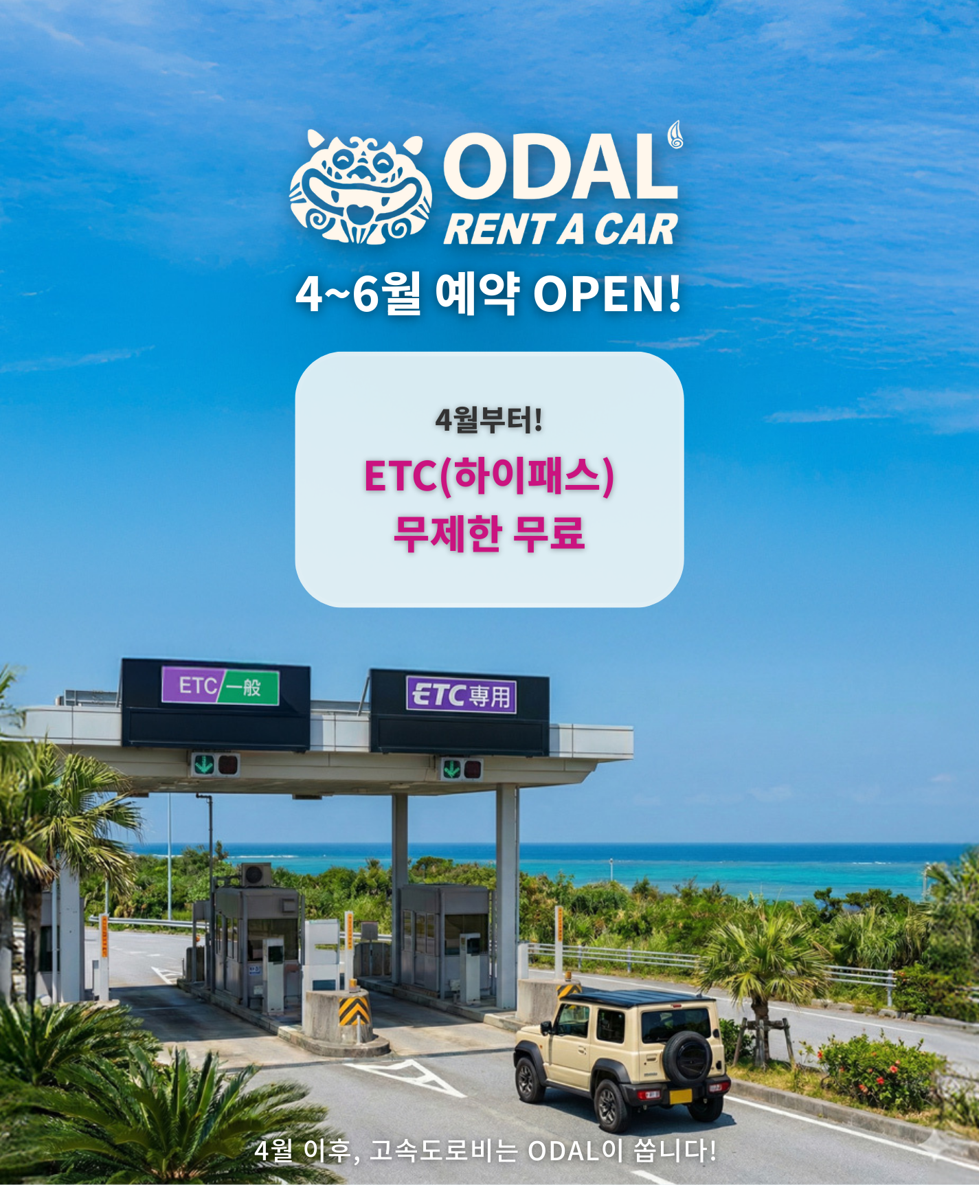 4월 1일 이후 출발 예약부터 ETC카드를 무료 제공해 드립니다 (고속도로 무제한 이용)