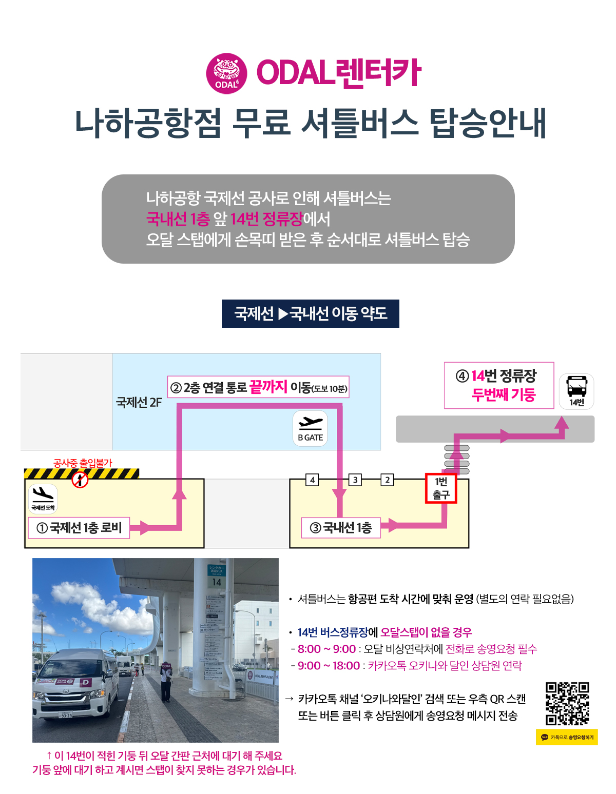 • 오키나와 나하공항 국내선 1층 14번 버스정류장으로 이동 (오달렌터카)